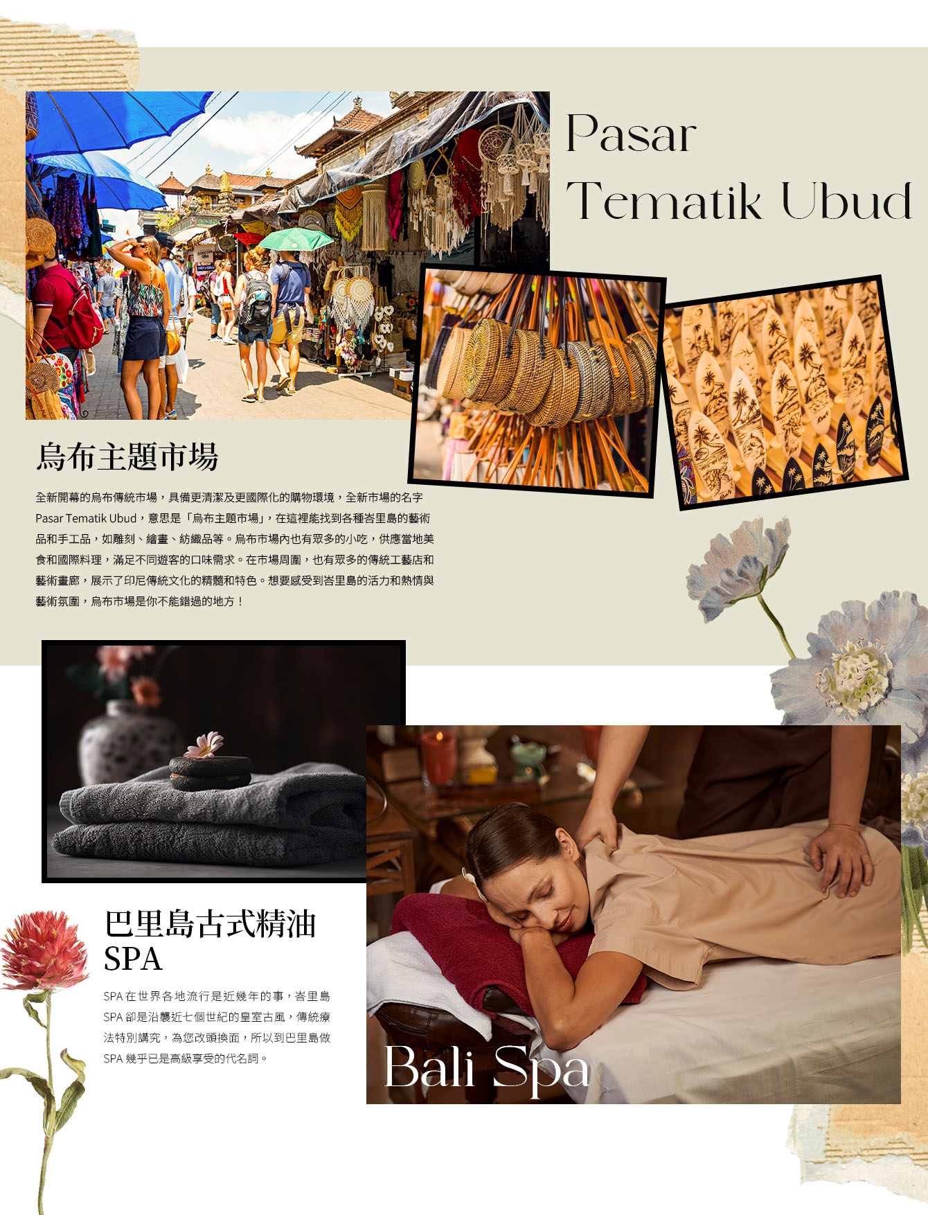 *本配套為促銷價,恕地接無法安排行程,旅客自己安排行程,想停留多久都由自己決定,如需外站代訂行程:SPA.泛舟.等項目,依照公定牌價收費。 額外費用:郊區額外費用 下列超出服務範圍的地區收取附加費,請現場支付給司機。 Candidasa甘地達薩、Lovina羅威那、Sidemen席德門、Pemuteran 佩母德蘭 和其他未提及的地區:每人 IDR150,000 (現場支付) 。 *超時額外費用:每小時IDR 100.000/車。(現場支付) *因不可抗力因素,導致行程變更(餐食,景點等)順序,與客人協商一致後,當團領隊與旅客立下切結同意書,保證一切行程都會走到完。(因為巴厘島是宗教濃厚的旅遊盛地,祭拜的節日多,所以確保行程能走完, 所以請多多配合) |