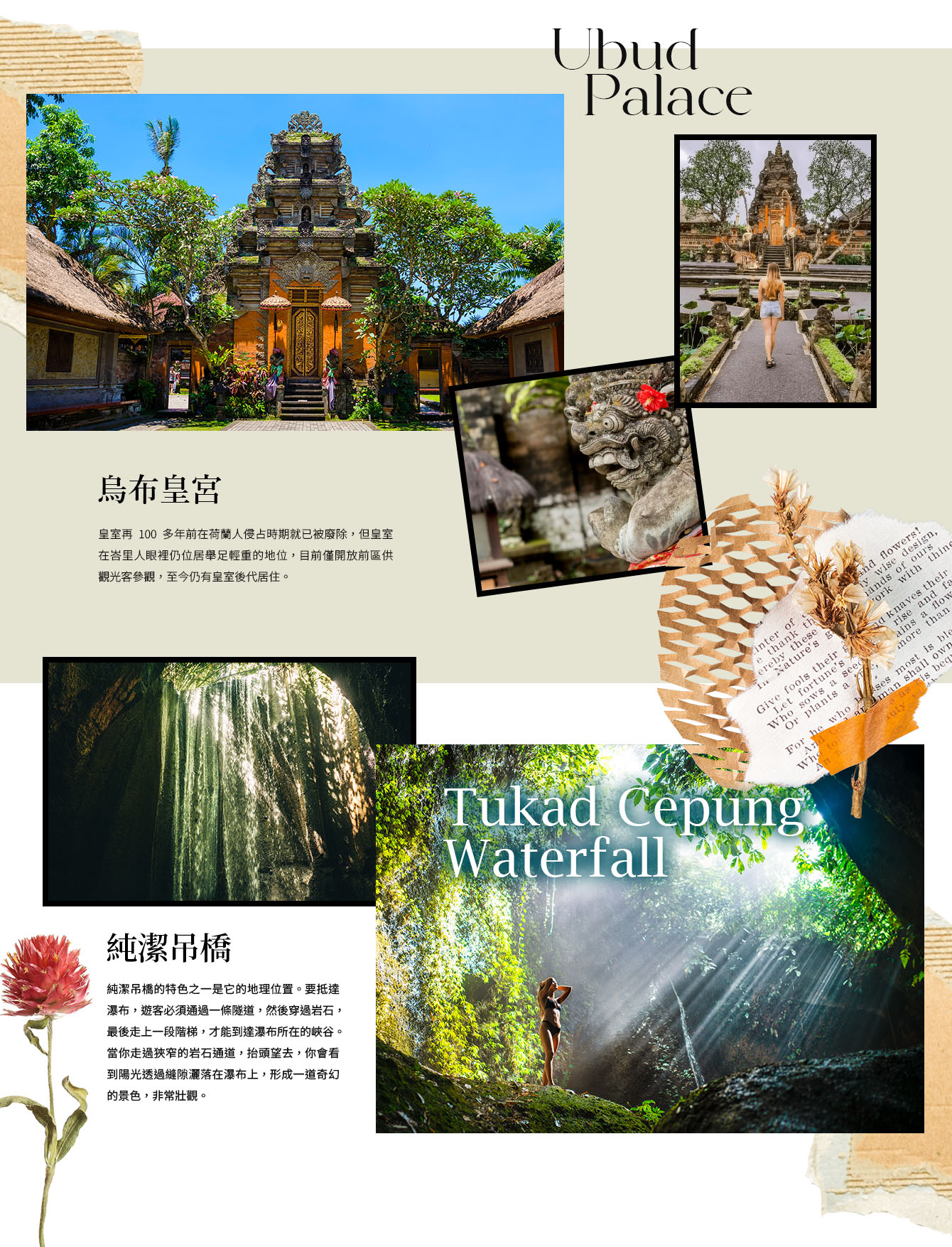 *因不可抗力因素,導致行程變更(餐食,景點等)順序,與客人協商一致後,當團領隊與旅客立下切結同意書,保證一切行程都會走到完。(因為巴厘島是宗教濃厚的旅遊盛地,祭拜的節日多,所以確保行程能走完, 所以請多多配合)