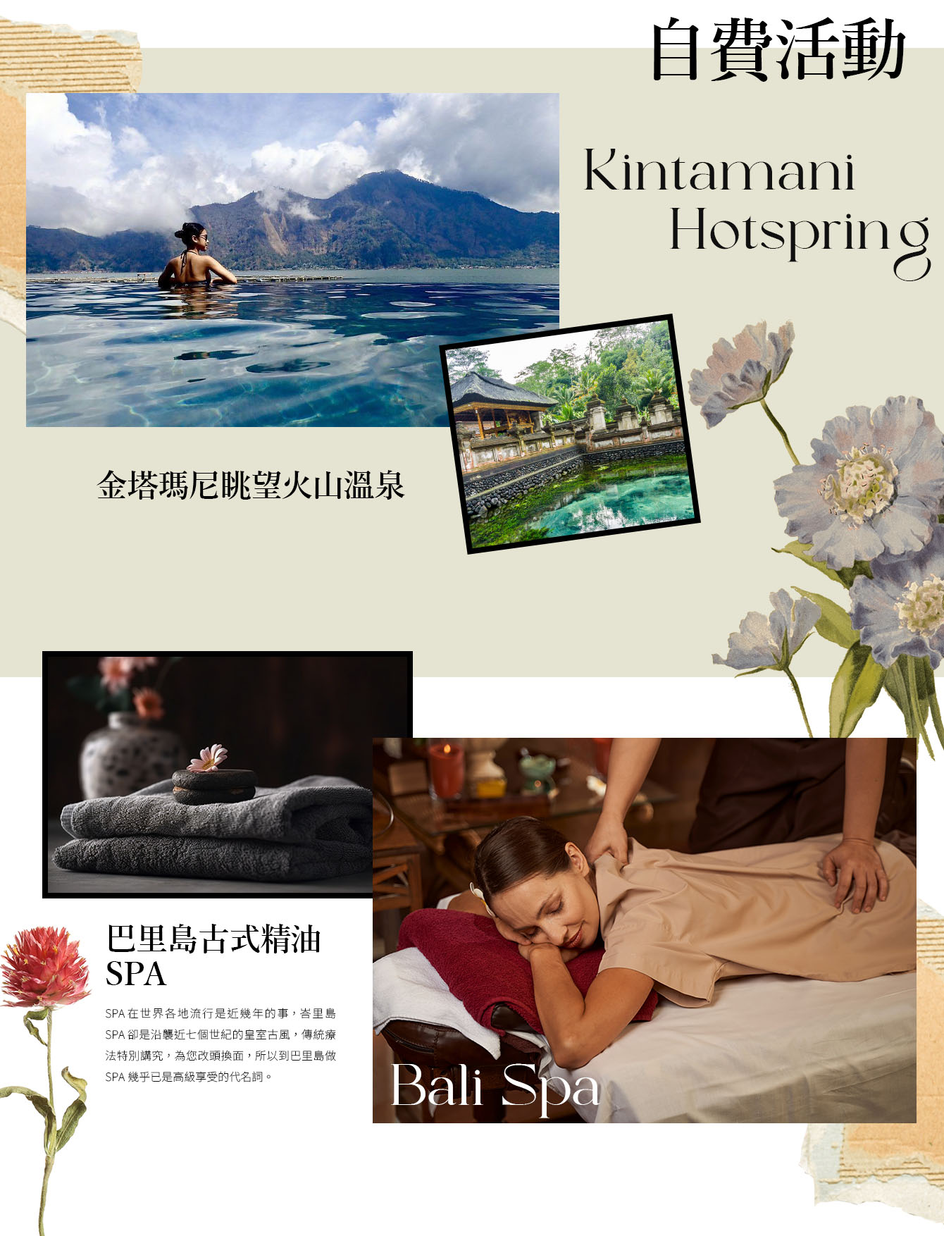 桃園/巴里島→美女獻花→超市採買→足部舒緩清潔+肩頸按摩30分鐘→金巴蘭觀賞落日