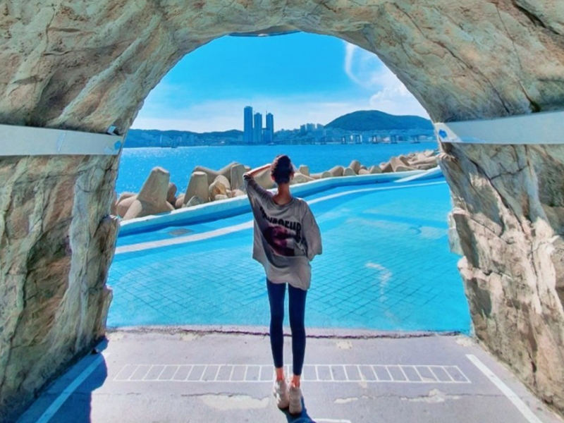 【絕影海岸散步路】絕影海岸步道是位在影島西邊蓬萊山下,沿著海岸線打造成的步道,全長約3公里。原本這裡地形陡峭艱險不易接近,但為了滿足市民對海洋觀光之需求,作為公共勞動工程之一環,相關當局於2001年沿海岸線舖設了步道。在風景優美的絕影海岸步道,一側的石牆被貼上彩色磁磚裝飾而成的長丞、石塔、船歌等各種造景,另一側則是寬廣的大海。2014年,這裡還被國土海洋部選為韓國5大海岸世界路之一。2021年,則被選為釜山安心觀光景點。