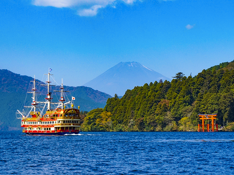 【箱根蘆之湖海盜船】蘆之湖海盜船(箱根海賊船)是箱根的熱門觀光景點,以17-19世紀歐洲戰艦為造型,航行於桃源台港、箱根町港與元箱根港之間,單程約25-40分鐘。船上可遠眺富士山、蘆之湖風光及箱根神社水中鳥居,主要有女王號、太陽號及勝利號三艘船隻,適合家庭與拍照。