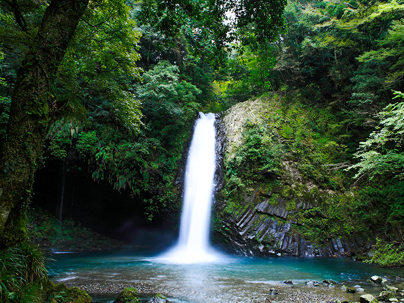 【淨蓮瀑布】被選為日本瀑布100選的名瀑,有著伊豆數一數二澄澈乾淨的名水,水流由岩壁向下直衝,在這種清水下所種出的芥末自然也是一絕,通向淨蓮瀑布的遊歩道兩邊便是整齊的芥末田。而被原生林所包圍,高25米、寬7米的瀑布也極為神秘,更留下了瀑布主人是美麗蜘蛛女的傳說。伊豆因日本著名歌曲和小說的舞台而聞名,淨蓮瀑布則是​​伊豆的代表性觀光景點之一。
