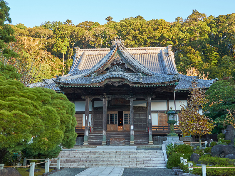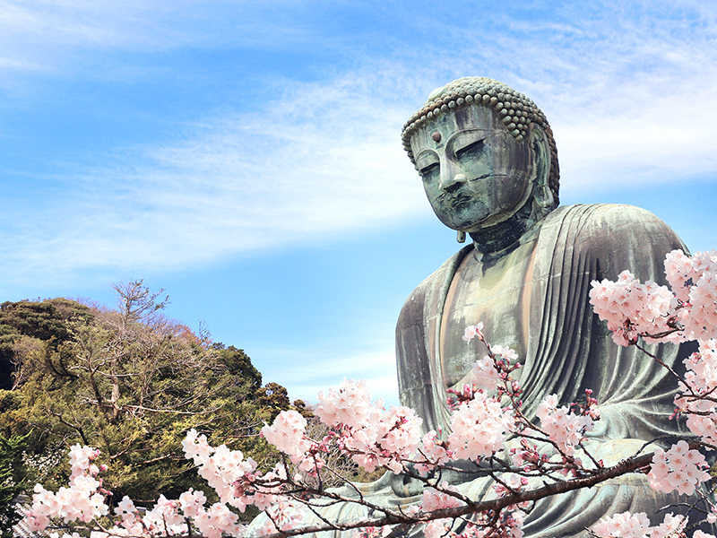 【鎌倉大佛殿高德院】坐落高德院內,聳立在遊客面前。高12公尺,光是臉部就有2.3公尺,重達121公噸。從1238年開工,花費了6年的時間木雕大佛修建完工,到 1252 年開始修建為金佛。為現存鎌倉的佛像之中唯一的國寶;也因為日本歌人與謝野晶子的歌詠於是大佛也有「美男」的美稱。