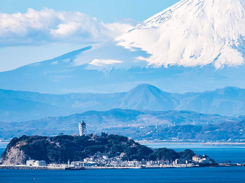 【江之島】是鐮倉西面的一個小島,與鐮倉之間有一座長 400 公尺長的橋。長期以來,這裡都是東京人一日遊的熱門目的地。尤其是在江戶時代(1603-1867年),很多歌舞伎藝人等娛樂從業者都喜歡到這裡遊玩。如今,江之島成為了一座融合傳統與現代的繁華島嶼,商店、旅館和餐廳隨處可見,觀光景點也多不勝數。