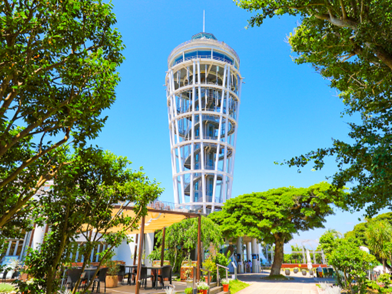 【江之島海蠟燭(展望燈塔)】是湘南的標誌性建築,2002年作為江之電開業100周年項目,2003年4月29日進行了翻修並重新開放。在江之島海蠟燭的正下方有延伸開去的木質平臺「日落台」,是借用了舊江之島展望燈塔的遺址建造的。顧名思義,這是一個可以欣賞到夕陽美景的平臺,其景色不亞於展望室。