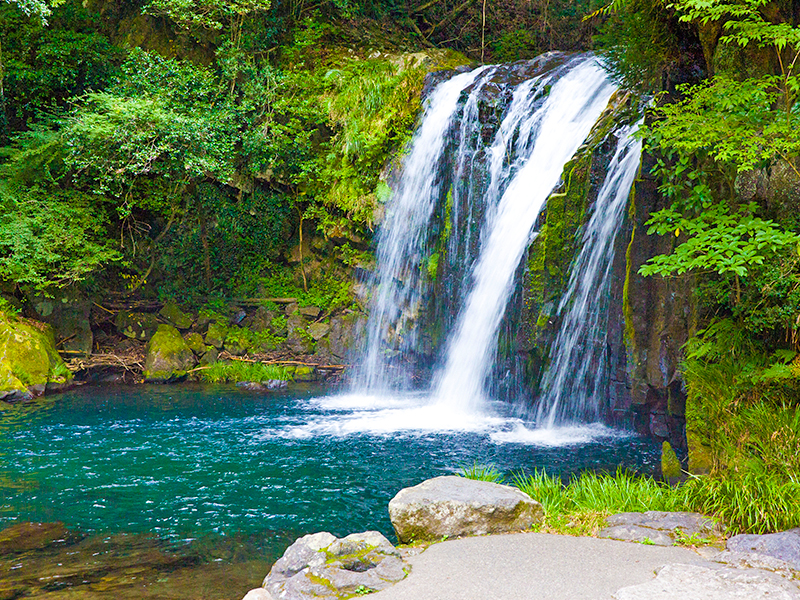 【河津七滝】河津川發源於天城山脈,沿途形成七個清澈悅動的瀑布。優美的河津七瀧小徑將七個瀑布連接起來,讓您可以盡情造訪這些美不勝收的潺潺水景。
