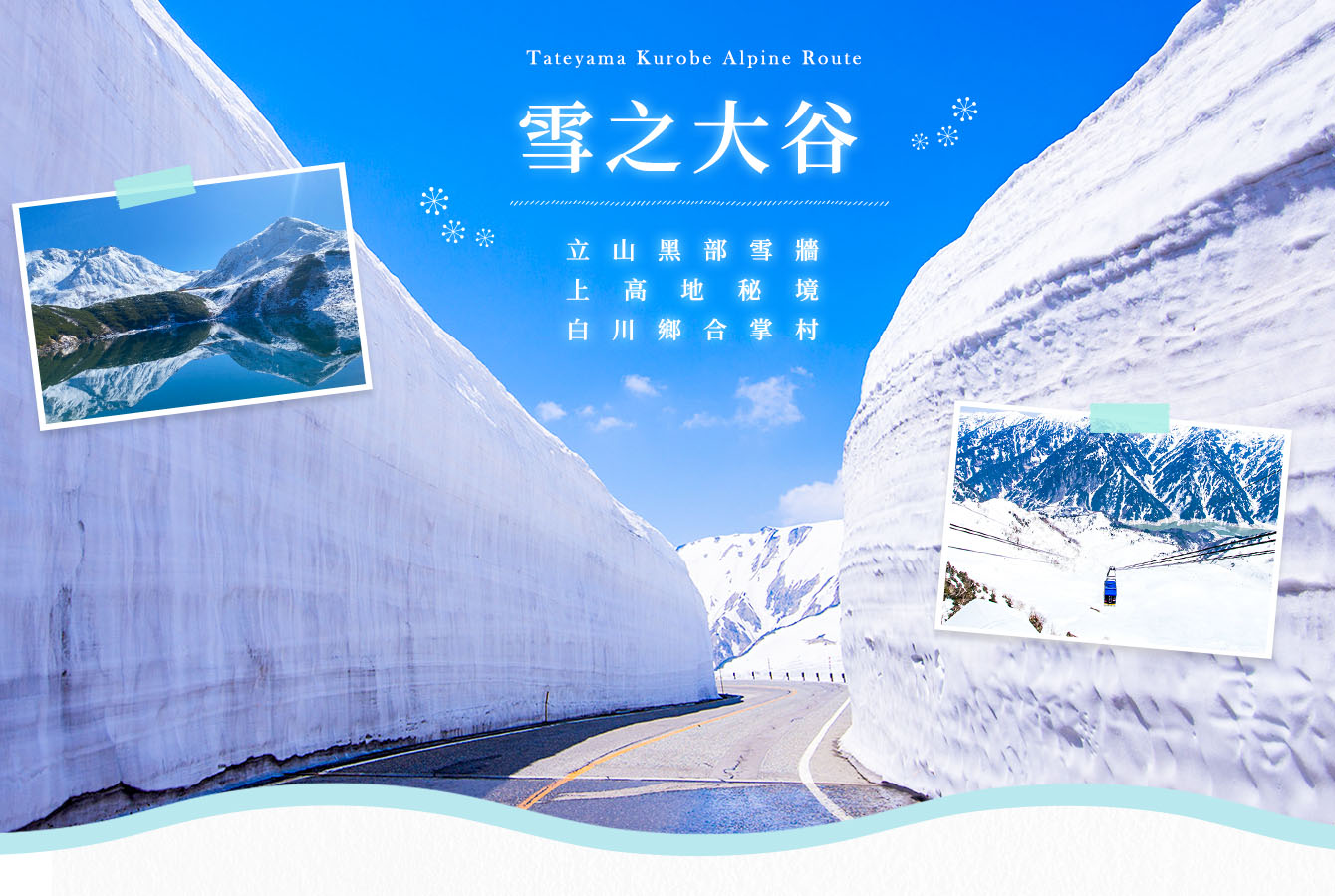 2、立山黑部地區為2500米高度的山地,氣溫與平地有很大的差別,請事先準備適當保暖衣物、帽子。另外,白雪容易反光請注意防曬或攜帶太陽眼鏡等。建議帶防滑好走的鞋(或加防滑墊)方便行走,以策安全。若遇旺季人潮過多、依照官方交通工具運能限制,則部分交通工具,將微調整為「臨時直通巴士」。並依行程流暢度微調整午餐改為「山下用餐 立山日式風味御膳」或「 山上用餐 立山日式風味御膳餐盒 」。