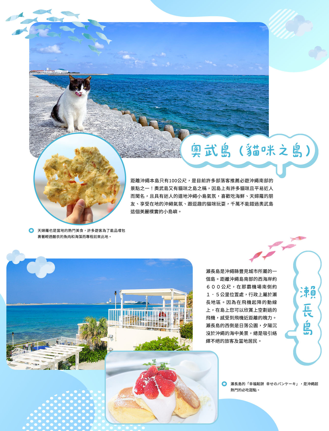9.沖繩航線飛行時間較短,去回程機上皆以簡易餐點為主,各家航空公司提供的殊餐食(例:兒童餐、不含牛肉餐、水果餐、素食….等等)不同,最終仍需以航空公司回覆為主,不便之處,尚請見諒。