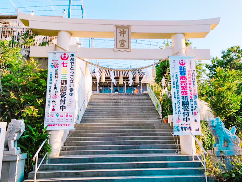 【波上宮】琉球八社中排名第一,是從前人們向「NIRAI-KANAI(極樂世界)」祈禱的聖地。出入與各國貿易為基地的那霸港的船隻,都會眺望高崖上供奉的波上宮與其神殿,來祈求航行安全與感恩之意。波上宮聚集了各式各樣的神明,保佑國家、姻緣、安胎、旅行安全、子孫繁榮、延命長壽的信仰被虔誠地信奉著。近年來建築相關、生意興隆、初生兒參拜、消災解厄、交通安全等各種願望成就的神明也非常受到尊崇,波上宮作為沖繩的守護神被信奉著。
