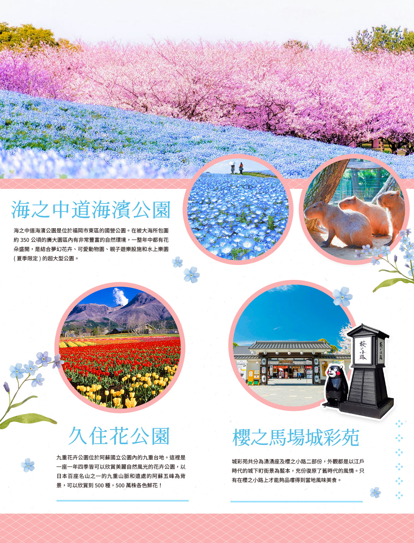 【海之中道海濱公園】海之中道海濱公園是位於福岡市東區的國營公園。在被大海所包圍約350公頃的廣大園區內有非常豐富的自然環境,一整年中都有花朵盛開,是結合夢幻花卉、可愛動物園、親子遊樂設施和水上樂園(夏季限定) 的超大型公園。
