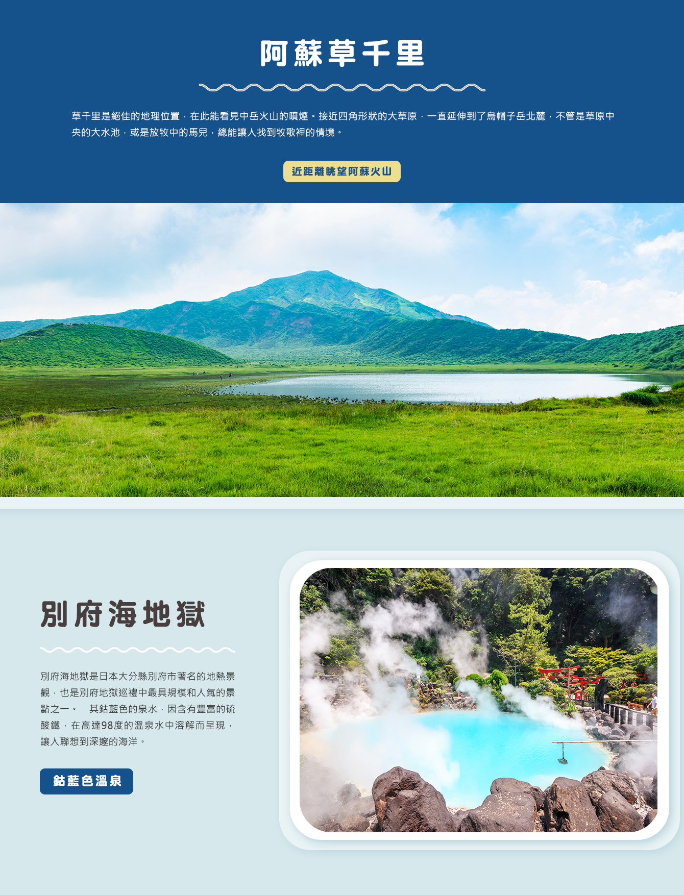 ※備註:如遇別府海地獄定休無法前往時,則改走【明礬地獄】。不便之處,敬請見諒!
