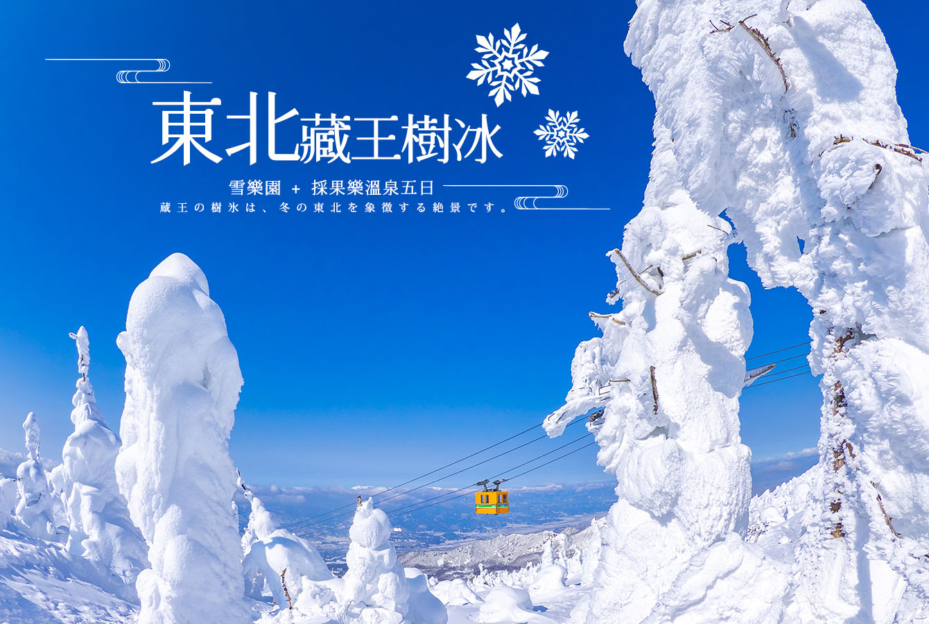 【藏王樹冰】藏王「樹冰」,是日本山形縣藏王冰原上冬季最特殊的自然奇景,大約從每年的11月底到12月初開始形成,在此時期雲粒霧冰隨著冬期東北季節風被帶來,逐漸在針葉樹上著冰雪,1、2月期間,藏王冰原翠綠的蒼松便完全為白雪包覆,或如人形、或形似野獸、或狀若土地公,形狀千奇百怪,不一而足,而且僅在冬季出現,也難怪日本民間要稱它是「雪怪」。而在寂靜的夜晚裡打上五顏六色的燈光的樹冰,銀白色的樹冰馬上搖身一變成奇幻世界,讓這奇異的樹冰絕景更帶點神秘色彩。