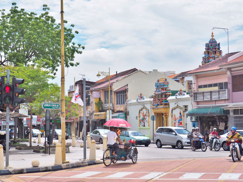 (觀音亭、甲必丹吉寧回教堂、小印度區)馬來西亞由三大種族(馬來人、華人、印度人)所組成,而在喬治城內我們將帶著您觀察他們是如何和諧共融的生活在一起。小印度區:這裡周圍環繞著濃厚的印度香料味道、印度音樂還有各式各樣印度當地土產及傳統服飾販賣,令您感覺猶如置身於印度。觀音亭:是由1800年代最早移民到檳城的華裔所建,是一座檳城最古老的華人廟宇。甲必丹吉寧回教堂Kapitan Keling Mosuqe:這是由最早移民到檳城的印度回教徒所建的回教堂。回教堂著名的洋蔥頭屋頂在豔陽下閃爍,內部充滿幾何形裝飾圖樣,搭配金色的裝飾看起來十分高雅。
