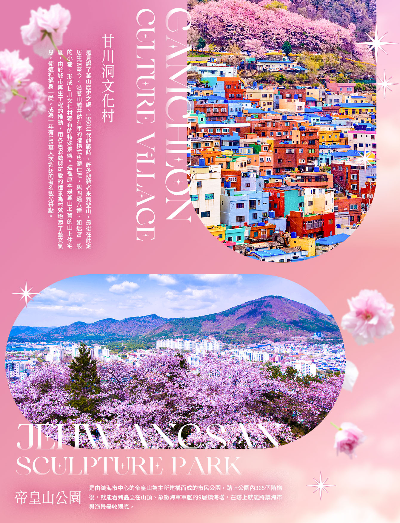 尋找小王子之旅~甘川洞文化村→韓流彩妝名店→韓國新熱門打卡景點~白險攤文化村+絕影海岸散步路+足浴海景咖啡廳(附咖啡或飲料1杯/人)→釜山電影街~BIFF 廣場→南浦洞國際市場+光復洞時裝街
