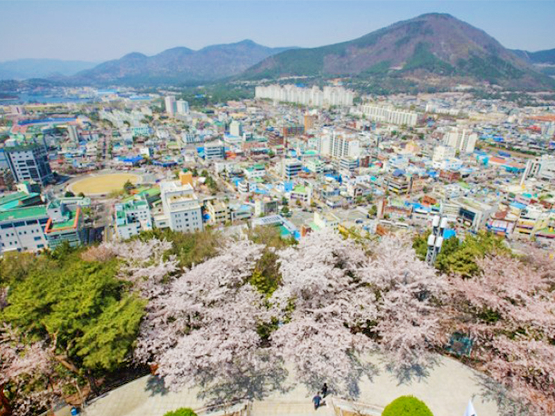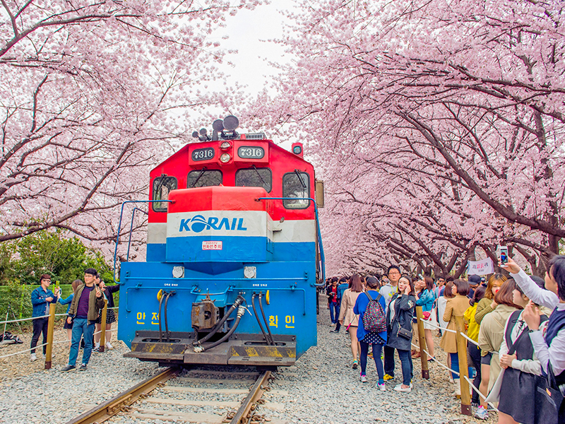 【鎮海櫻花重鎮】是韓國代表性的軍港都市,有著與朝鮮壬辰倭亂時救國英雄李舜⾂將軍相關的眾多文化遺跡,現在搖⾝⼀變成為韓國眾所皆知的著名鎮海軍港祭。軍港祭的時間⼜恰好碰上市內櫻花盛開,櫻花祭也⼀併舉⾏。每年三⽉下旬到四⽉中旬,鎮海市22萬株櫻花盛開,街道染成⼀整片美麗的粉紅⾊。街道兩側的櫻花樹形成綿延數公⾥⻑的櫻花隧道,櫻雪紛⾶,沿著街道漫步,就能感受春天的浪漫氣息。