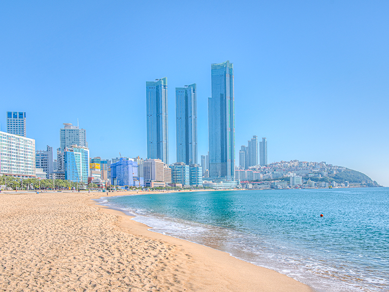 【海雲台海濱】是釜山最受歡迎的海濱度假勝地,以的細軟沙灘和清澈海水聞名,適合夏季戲水和冬季散步。海灘周邊有豐富的觀光資源,其中每年夏季舉辦的國際沙雕節和冬季光影慶典最受矚目。此外,沿著舊鐵道改建而成的海雲台藍線公園也讓海濱景點更具特色。