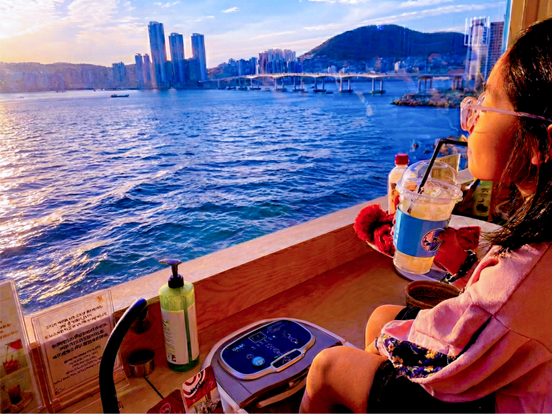【海景咖啡足浴體驗】是在釜山的白淺灘文化村內,店家提供邊旅客一邊欣賞海景一邊泡腳、喝咖啡、肩頸按摩的服務。店家它位於「海景第一排」,也是許多遊客前往打卡拍照的熱門景點。