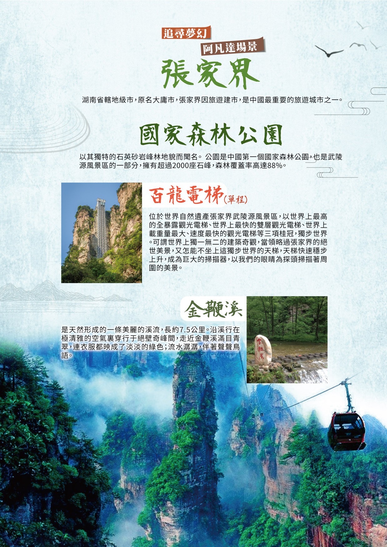 【張家界】湖南省轄地級市,原名大庸市,張家界因旅遊建市,是中國最重要的旅遊城市之一。