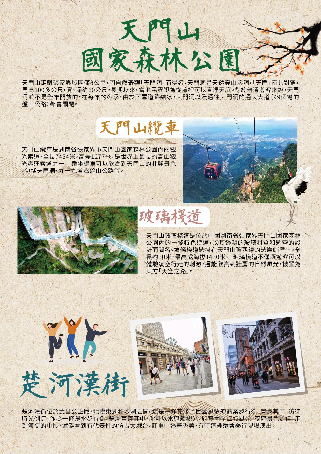 今天結束豐富的武漢常德張家界 8 日行,謝謝貴賓們對我們的支持,敬祝大家旅途平安愉快,有個美好的一天。
